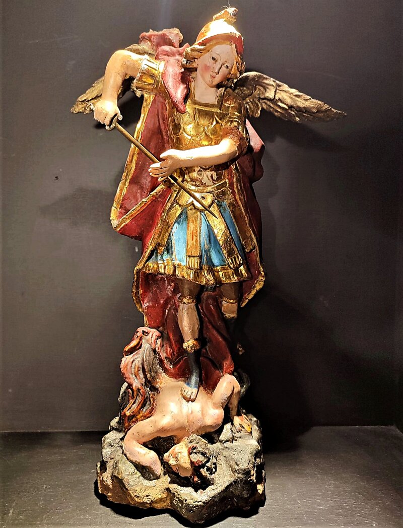 Michele che sconfigge il diavolo, abilmente scolpita da uno scultore